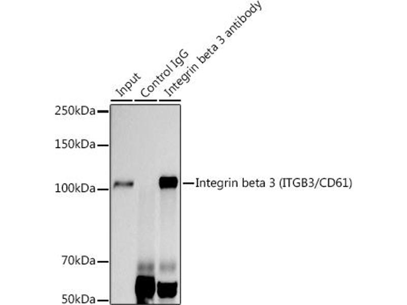 The ITGB3 protein product is the integrin beta chain beta 3. Integrins are integral cell-surface proteins composed of an alpha chain and a beta chain. A given chain may combine with multiple partners resulting in different integrins. Integrin beta 3 is found along with the alpha IIb chain in platelets. Integrins are known to participate in cell adhesion as well as cell-surface mediated signalling. [provided by RefSeq, Jul 2008],BDPLT16,BDPLT2,CD61,GP3A,GPIIIa,GT,Integrin beta 3,ITGB3,Angiogenesis,Blood,Cancer,Cardiovascular,Cardiovascular diseases,Cardiovascular diseases_Hypertension,CDs,Cell Adhesion,Cell Biology & Developmental Biology,Cytoskeleton,G protein signaling,G protein signaling_G-Protein-Coupled Receptors Signaling to MAPK/Erk,Immunology & Inflammation,Invasion and Metastasis,MAPK-Erk Signaling Pathway,PI3K-Akt Signaling Pathway,Signal Transduction,ITGB3