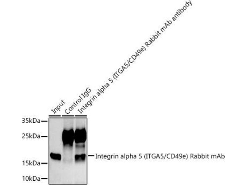 The product of this gene belongs to the integrin alpha chain family. Integrins are heterodimeric integral membrane proteins composed of an alpha subunit and a beta subunit that function in cell surface adhesion and signaling. The encoded preproprotein is proteolytically processed to generate light and heavy chains that comprise the alpha 5 subunit. This subunit associates with the beta 1 subunit to form a fibronectin receptor. This integrin may promote tumor invasion, and higher expression of this gene may be correlated with shorter survival time in lung cancer patients. Note that the integrin alpha 5 and integrin alpha V subunits are encoded by distinct genes. [provided by RefSeq, Oct 2015],CD49e,FNRA,VLA-5,VLA5A,Integrin alpha 5,ITGA5,CDs,Cell Adhesion,Cell Biology & Developmental Biology,Cytoskeleton,Endothelial Progenitors,G protein signaling,G protein signaling_G-Protein-Coupled Receptors Signaling to MAPK/Erk,Hematopoietic Progenitors,Immunology & Inflammation,MAPK-Erk Signaling Pathway,PI3K-Akt Signaling Pathway,Signal Transduction,Stem Cells,ITGA5