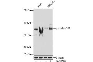 The protein encoded by this gene is a multifunctional, nuclear phosphoprotein that plays a role in cell cycle progression, apoptosis and cellular transformation. It functions as a transcription factor that regulates transcription of specific target genes. Mutations, overexpression, rearrangement and translocation of this gene have been associated with a variety of hematopoietic tumors, leukemias and lymphomas, including Burkitt lymphoma. There is evidence to show that alternative translation initiations from an upstream, in-frame non-AUG (CUG) and a downstream AUG start site result in the production of two isoforms with distinct N-termini. The synthesis of non-AUG initiated protein is suppressed in Burkitt's lymphomas, suggesting its importance in the normal function of this gene. [provided by RefSeq, Jul 2008],MRTL, MYCC, bHLHe39, c-Myc,Apoptosis,Cancer,Cell Biology & Developmental Biology,Cell Cycle,Cell Cycle_Cell differentiation,Endocrine & Metabolism,Epigenetics & Nuclear Signaling,G1/S Checkpoint,Hedgehog Signaling Pathway,IL-6 Receptor Signaling Pathway,Immunology & Inflammation,MAPK-Erk Signaling Pathway,MAPK-P38 Signaling Pathway,Notch Signaling Pathway,Protein phosphorylation,Signal Transduction,Stem Cells,Transcription Factors,Tumor biomarkers,Warburg Effect,MYC