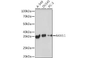 This gene encodes a homeobox-containing transcription factor. This transcription factor functions as a negative regulator of epithelial cell growth in prostate tissue. Aberrant expression of this gene is associated with prostate tumor progression. Alternate splicing results in multiple transcript variants of this gene. [provided by RefSeq, Jan 2012],BAPX2, NKX3, NKX3.1, NKX3A,Epigenetics & Nuclear Signaling,Transcription Factors,NKX3-1