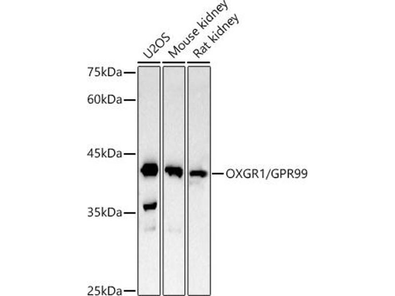 This gene encodes a G protein-coupled receptor (GPCR) that belongs to the oxoglutarate receptor family within the GPCR superfamily. The encoded protein is activated by the citric acid intermediate, oxoglutarate, as well as several cysteinyl leukotrienes, including leukotrienes E4, C4 and D4, which are implicated in many inflammatory disorders. In mice, a knock-out of this gene leads to middle ear inflammation, changes in the mucosal epithelium, and an increase in fluid behind the eardrum, and is associated with hearing loss. Alternative splicing results in multiple transcript variants. [provided by RefSeq, Oct 2016],OXGR1,GPR80,GPR99,P2RY15,P2Y15,aKGR,Signal Transduction,G protein signaling,G-Protein-Coupled Receptors(GPCR),OXGR1 / GPR99