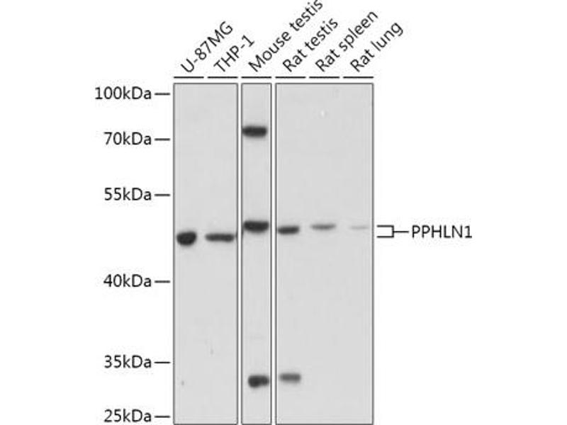 The protein encoded by this gene is one of the several proteins that become sequentially incorporated into the cornified cell envelope during the terminal differentiation of keratinocyte at the outer layers of epidermis. This protein interacts with periplakin, which is known as a precursor of the cornified cell envelope. The cellular localization pattern and insolubility of this protein suggest that it may play a role in epithelial differentiation and contribute to epidermal integrity and barrier formation. Multiple alternatively spliced transcript variants encoding distinct isoforms have been observed. [provided by RefSeq, Jul 2008],CR,HSPC206,HSPC232,PPHLN1,Epigenetics & Nuclear Signaling,RNA Binding,Cell Biology & Developmental Biology,Cell Cycle,Cell differentiation,PPHLN1