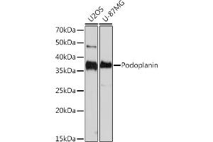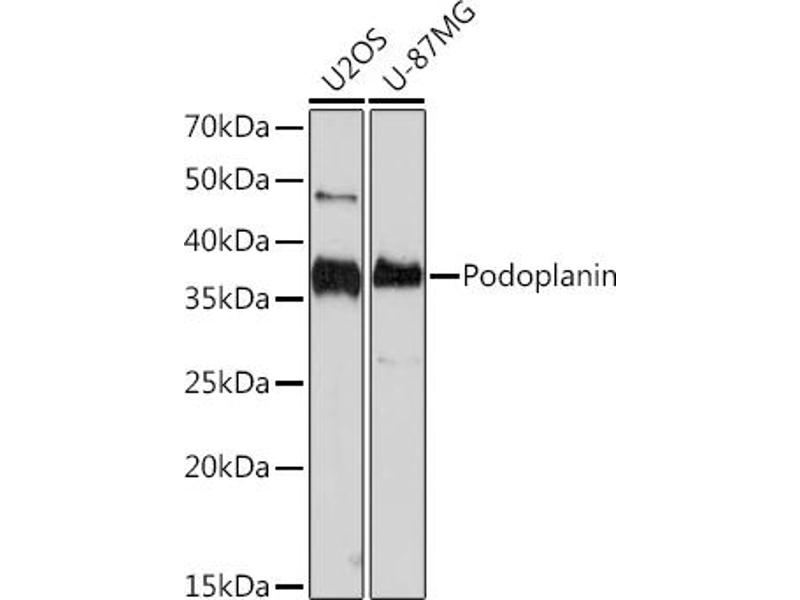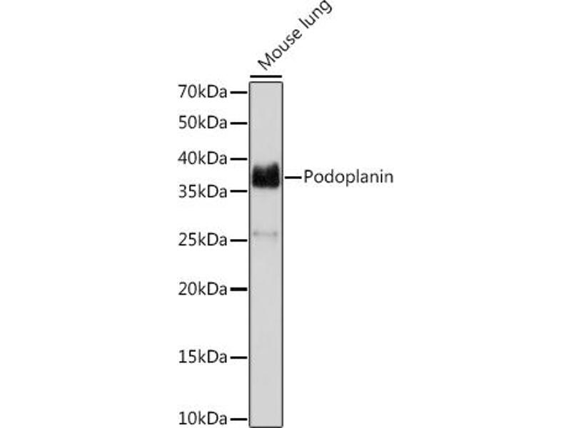 This gene encodes a type-I integral membrane glycoprotein with diverse distribution in human tissues. The physiological function of this protein may be related to its mucin-type character. The homologous protein in other species has been described as a differentiation antigen and influenza-virus receptor. The specific function of this protein has not been determined but it has been proposed as a marker of lung injury. Alternatively spliced transcript variants encoding different isoforms have been identified. [provided by RefSeq, Jul 2008],AGGRUS, GP36, GP40, Gp38, HT1A-1, OTS8, PA2.26, T1A, T1A-2, T1A2, TI1A,Blood,Cardiovascular,Cell Biology & Developmental Biology,Cell Cycle,Cell Cycle_Centrosome,PDPN