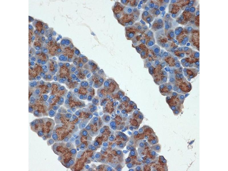 This gene belongs to the trypsin family of serine proteases and encodes anionic trypsinogen. It is part of a cluster of trypsinogen genes that are located within the T cell receptor beta locus. Enzymes of this family cleave peptide bonds that follow lysine or arginine residues. This protein is found at high levels in pancreatic juice and its upregulation is a characteristic feature of pancreatitis. This protein has also been found to activate pro-urokinase in ovarian tumors, suggesting a function in tumor invasion. In addition, this enzyme is able to cleave across the type II collagen triple helix in rheumatoid arthritis synovitis tissue, potentially participating in the degradation of type II collagen-rich cartilage matrix. Alternative splicing results in multiple transcript variants.,PRSS2, TRY2, TRY8, TRYP2, trypsin-2,Cell Biology & Developmental Biology,Ubiquitin,PRSS2
