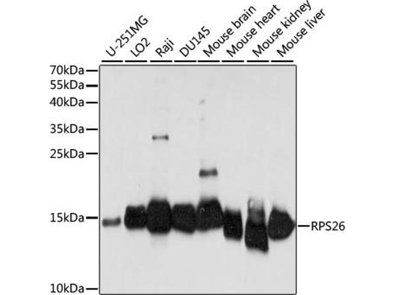 - A synthetic peptide corresponding to a sequence within amino acids 1-100 of human RPS26 (NP_001020.2).