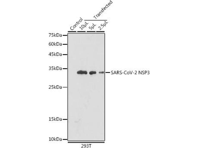 Cet anticorps anti-SARS-CoV NSP3 Polyclonal Lapin (ABIN7270149) détecte spécifiquement SARS-CoV NSP3 dans WB.