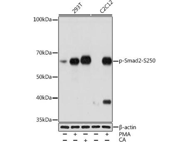 The protein encoded by this gene belongs to the SMAD, a family of proteins similar to the gene products of the Drosophila gene 'mothers against decapentaplegic' (Mad) and the C. elegans gene Sma. SMAD proteins are signal transducers and transcriptional modulators that mediate multiple signaling pathways. This protein mediates the signal of the transforming growth factor (TGF)-beta, and thus regulates multiple cellular processes, such as cell proliferation, apoptosis, and differentiation. This protein is recruited to the TGF-beta receptors through its interaction with the SMAD anchor for receptor activation (SARA) protein. In response to TGF-beta signal, this protein is phosphorylated by the TGF-beta receptors. The phosphorylation induces the dissociation of this protein with SARA and the association with the family member SMAD4. The association with SMAD4 is important for the translocation of this protein into the nucleus, where it binds to target promoters and forms a transcription repressor complex with other cofactors. This protein can also be phosphorylated by activin type 1 receptor kinase, and mediates the signal from the activin. Alternatively spliced transcript variants have been observed for this gene. [provided by RefSeq, May 2012],JV18, JV18-1, MADH2, MADR2, hMAD-2, hSMAD2,Angiogenesis,Cancer,Cardiovascular,Cell Biology & Developmental Biology,Epigenetics & Nuclear Signaling,ESC Pluripotency and Differentiation,Growth factors,Protein phosphorylation,Signal Transduction,Stem Cells,TGF-b-Smad Signaling Pathway,TGF-b-Smad Signaling Pathway_SMADs,Transcription Factors,SMAD2