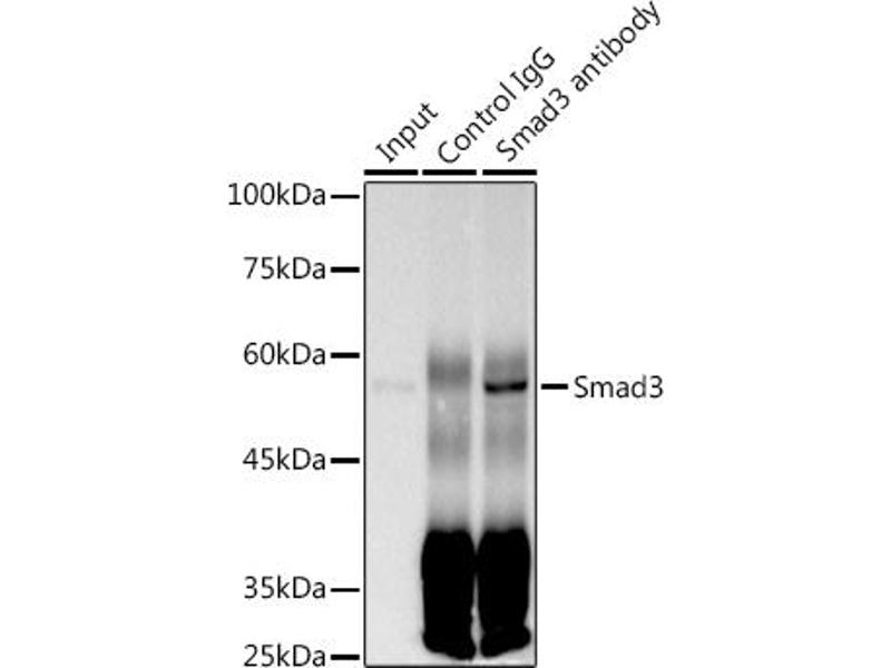 The protein encoded by this gene belongs to the SMAD, a family of proteins similar to the gene products of the Drosophila gene 'mothers against decapentaplegic' (Mad) and the C. elegans gene Sma. SMAD proteins are signal transducers and transcriptional modulators that mediate multiple signaling pathways. This protein functions as a transcriptional modulator activated by transforming growth factor-beta and is thought to play a role in the regulation of carcinogenesis. [provided by RefSeq, Apr 2009],HSPC193;HsT17436;JV15-2;LDS1C;LDS3;MADH3;SMAD3,Angiogenesis,Cancer,Cardiovascular,Cell Biology & Developmental Biology,Cell Cycle,Endocrine & Metabolism,Epigenetics & Nuclear Signaling,ESC Pluripotency and Differentiation,G1/S Checkpoint,Protein phosphorylation,Signal Transduction,Stem Cells,TGF-b-Smad Signaling Pathway,TGF-b-Smad Signaling Pathway_SMADs,Transcription Factors,SMAD3