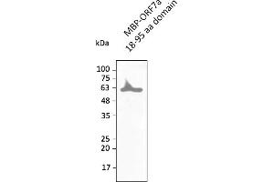 - Affinity purified recombinant fusion protein ORF7a (residues 18 to 95) produced in E. coli.