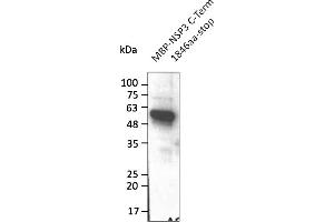 - Affinity purified recombinant fusion protein using the C-terminal of Nsp3 (residues 1846 to stop) and produced in E. coli.