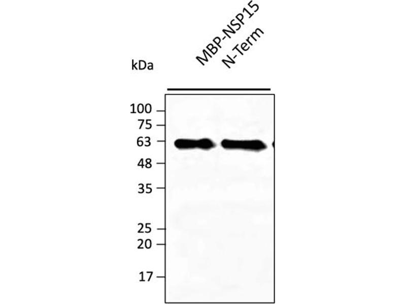 Affinity purified recombinant fusion protein using the N-terminal of Nsp15 (residues 1 to 160) and produced in E. coli.