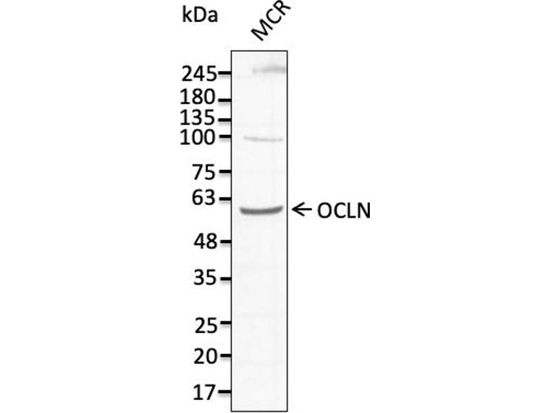 - Detects endogenous levels of OCLN in MCR, IMCD3, COS7, MDCK, HUH, HEK293, MCF7, mouse brain by Western blot.
