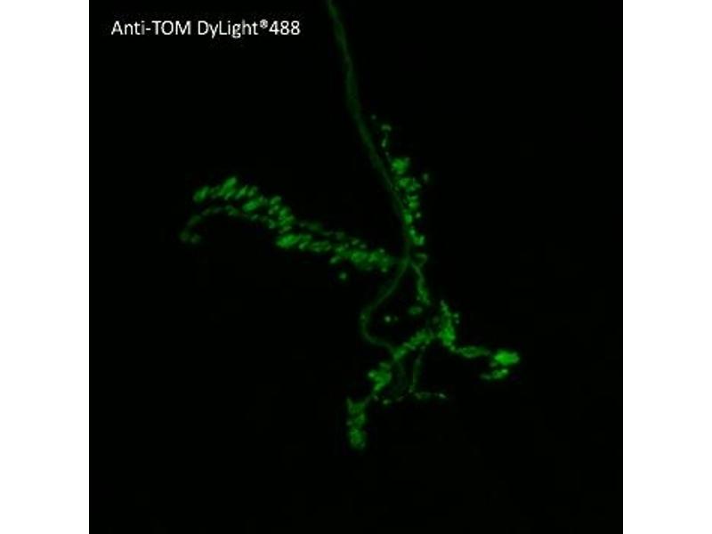 Goat polyclonal antibody to tdTomato (red fluorescent protein) conjugated to DyLight® 488. tdTomato protein is derived from DsRed, an engineered red fluorescent protein from so-called disc corals of the genus Discosoma. It is a genetic fusion of two copies of the dTomato gene, which has been specifically designed for low aggregation. It´s brightness and emission wavelength, makes it ideal for live animal research.