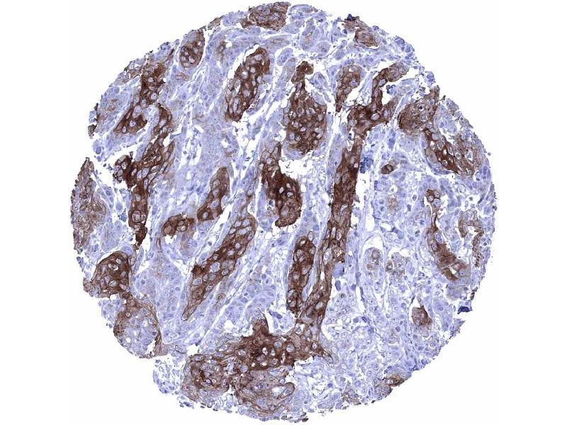 Negative Control: Desmoglein 1 immunostaining should be absent in all non-squamous epithelial cell types.