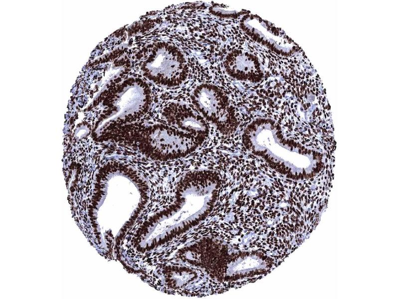 Positive Control: Uterine cervix: virtually all squamous and endocervical cells must show a moderate to strong nuclear staining. Tonsil: Scattered follicular dendritic cells in germinal centers and some squamous epithelial cells in tonsil crypts must show an at least weak nuclear ER immunostaining.