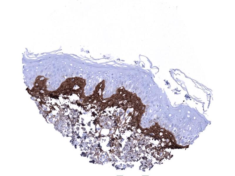 Negative Control: Skin: Periostin immunostaining should be lacking in epithelial cells.
