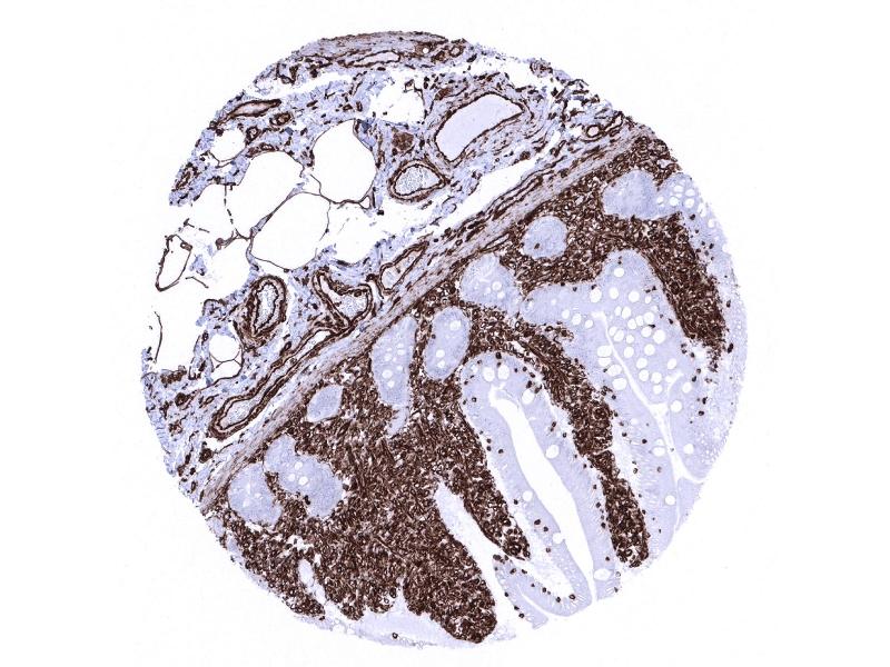 Positive Control: Liver: Kupffer cells must show a strong staining and sinusoidal endothelial cells should show an at least a weak staining. Colon: Endothelial and muscle cells of large vessels and stromal cells must show a strong Vimentin staining while dispersed intraepithelial T-cells must show an at least moderate intensity staining.
