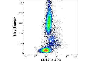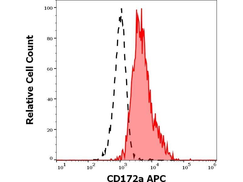 The mouse monoclonal antibody 15-414 recognizes en extracellular epitope of CD172a (SIRP alpha), an approximately 90 kDa transmembrane glycoprotein expressed on cells of myeloid origin and neurons.