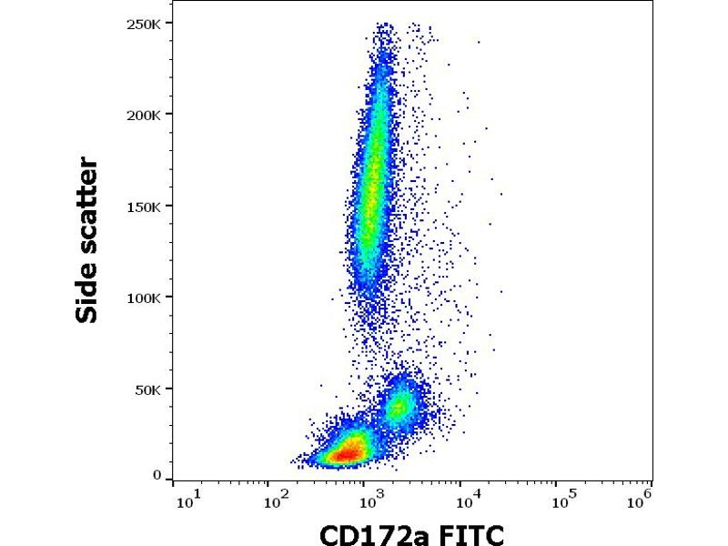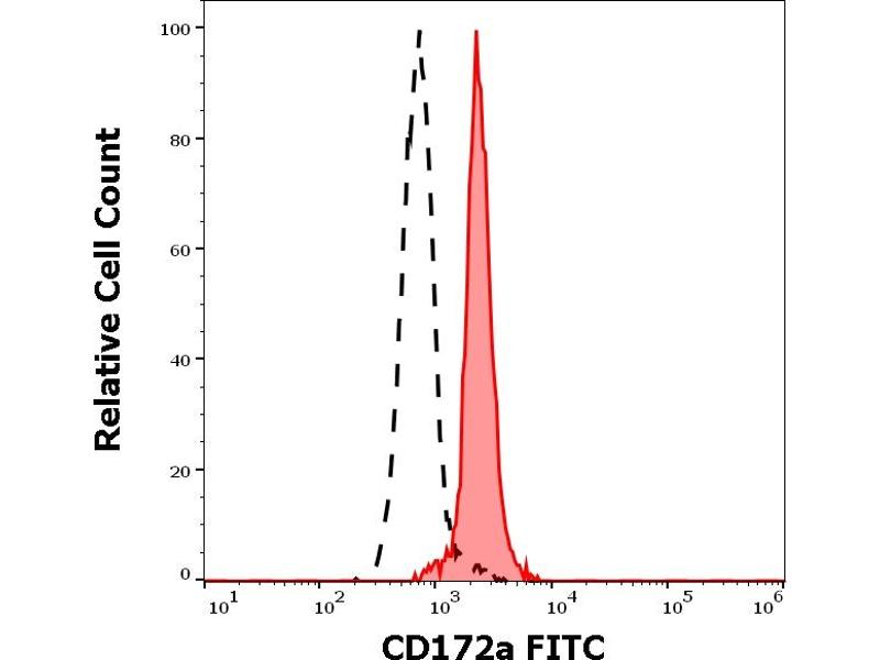 The mouse monoclonal antibody 15-414 recognizes en extracellular epitope of CD172a (SIRP alpha), an approximately 90 kDa transmembrane glycoprotein expressed on cells of myeloid origin and neurons.