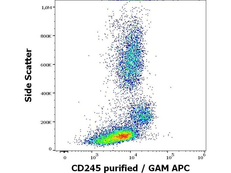 - CD245 is a 220-250 kDa transmembrane protein of unknown structure. It is expressed at lower level on resting blood lymphocytes, granulocytes, platelets, and thymocytes, and at high level on monocytes and on IL-2-dependent T cell lines. It is also expressed on Ewing sarcoma and osteosarcoma cell lines. CD245 seems to act as a costimulation molecule of T and NK cells.,p220/240, DY12, DY35