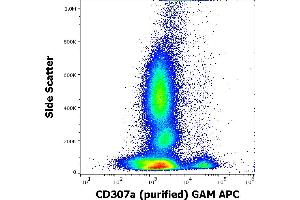 - Fc receptor like 1,CD307a is a type I transmembrane glycoprotein of the Fc receptor family. It contains two ITAM motifs in its cytoplasmic domain. CD307a is expressed mainly on the surface of mature B-cells, and is down-regulated in germinal center B-cells. Expression of CD307a is higher in patients with autoimmune diseases, compared with healthy controls.,FcRL1, FcRH1, IRTA5