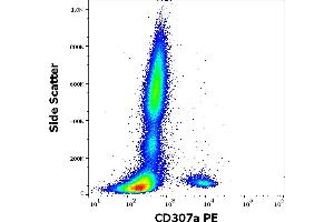 Fc receptor like 1,CD307a is a type I transmembrane glycoprotein of the Fc receptor family. It contains two ITAM motifs in its cytoplasmic domain. CD307a is expressed mainly on the surface of mature B-cells, and is down-regulated in germinal center B-cells. Expression of CD307a is higher in patients with autoimmune diseases, compared with healthy controls.,FcRL1, FcRH1, IRTA5