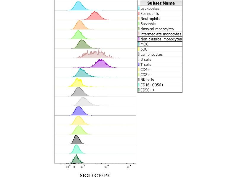 The mouse monoclonal antibody 5G6 recognizes an extracellular epitope of human SIGLEC10, a sialic acid-binding lectin expressed on subsets of human leucocytes.