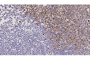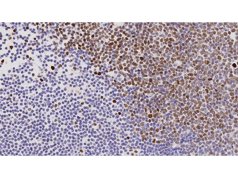 - Immunohistochemistry on paraffin sections. Suggested dilution: 1:200 for 30 minutes at 25°C. Heat induced epitope retrieval using Epitope Retrieval Solution pH 6.0. This is provided as a guide and users should determine their own optimal working dilutions.,Immunohistochemical (IHC) staining techniques allow for the visualization of antigens via the sequential application of a specific antibody to the antigen (primary antibody), a secondary antibody to the primary antibody and an enzyme complex with a chromogenic substrate with interposed washing steps. The enzymatic activation of the chromogen results in a visible reaction product at the antigen site. The specimen may then be counterstained and coverslipped. Results are interpreted using a light microscope.