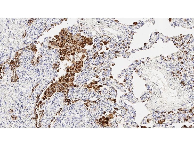 Immunohistochemistry on paraffin sections. Heat Induced Epitope Retrieval (HIER): Epitope Retrieval Solution pH 6. Suggested dilution: 1:400 for 30 minutes at 25 °C. This is provided as a guide and users should determine their own optimal working dilutions. Immunohistochemical (IHC) staining techniques allow for the visualization of antigens via the sequential application of a specific antibody to the antigen (primary antibody), a secondary antibody to the primary antibody and an enzyme complex with a chromogenic substrate with interposed washing steps. The enzymatic activation of the chromogen results in a visible reaction product at the antigen site. The specimen may then be counterstained and coverslipped. Results are interpreted using a light microscope.
