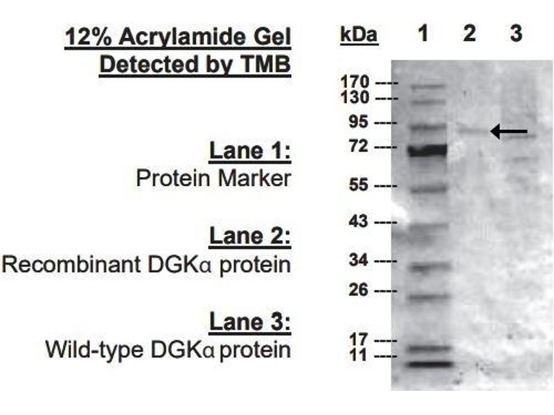 - Shown to recognize an 80-85kDa recombinant DGKα protein with non-specific cross activity to wild-type DGK ζ protein.