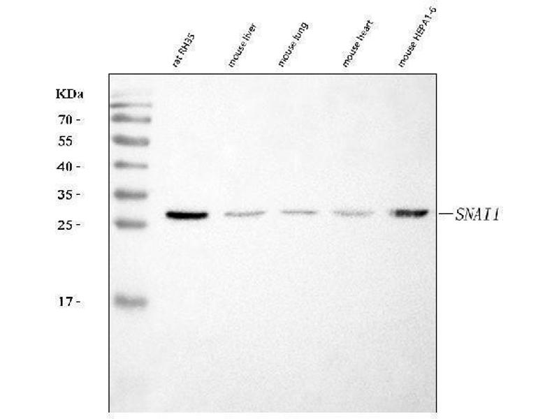 - Anti-SNAIL/SNAI1 Antibody (ABIN7599028). Tested in ELISA, Flow Cytometry, WB applications. This antibody reacts with Human, Mouse, Rat. This is a premium antibody that guarantees superior quality, high affinity, and strong signals with minimal background in Western blot applications.