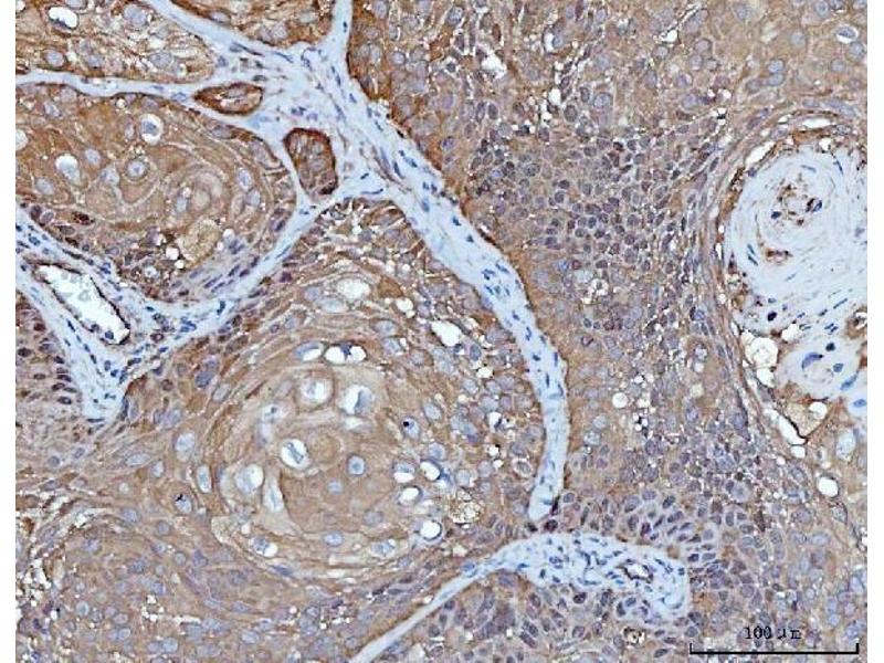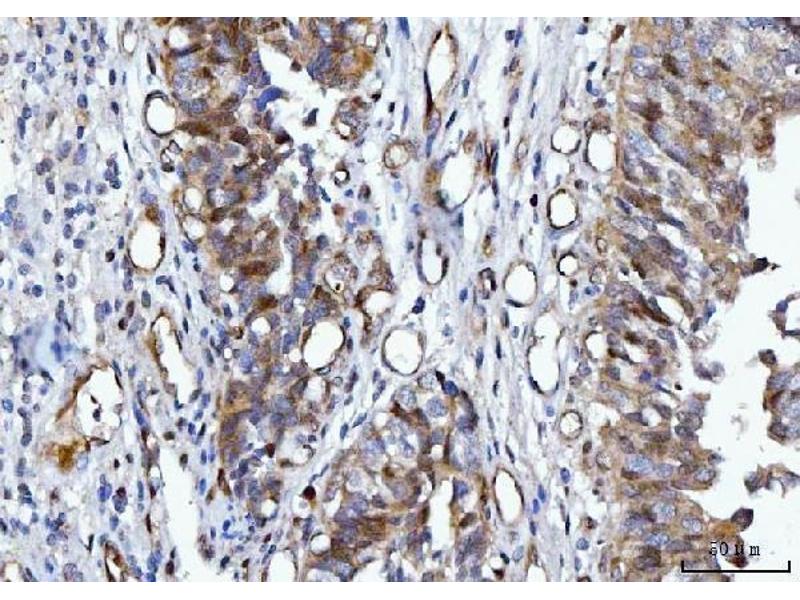 Tissue Specificity: Detected in endothelial cells in vascular tissue throughout the body. May appear at the surface of neural crest cells during their embryonic migration. Appears to be limited to vascular smooth muscle in normal adult tissues. Associated with tumor progression and the development of metastasis in human malignant melanoma. Expressed most strongly on metastatic lesions and advanced primary tumors and is only rarely detected in benign melanocytic nevi and thin primary melanomas with a low probability of metastasis.