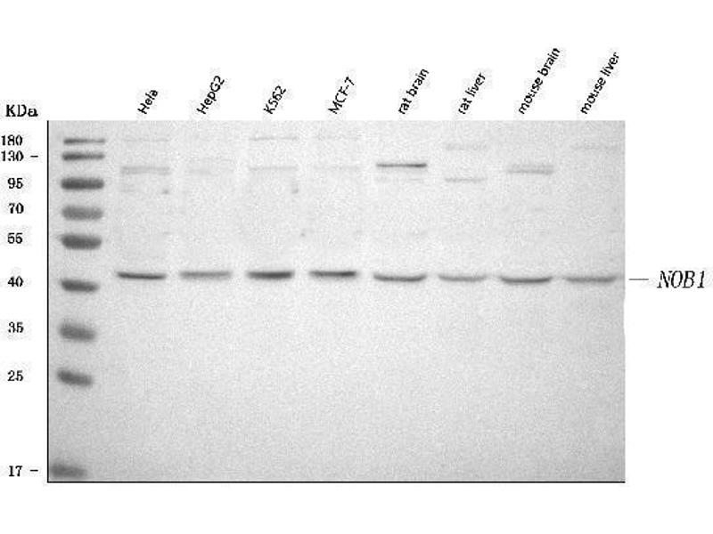- Anti-NOB1 Antibody (ABIN7599344). Tested in ELISA, IHC, WB applications. This antibody reacts with Human, Mouse, Rat. This is a premium antibody that guarantees superior quality, high affinity, and strong signals with minimal background in Western blot applications.