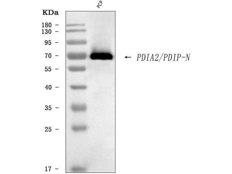 Background: Protein disulfide isomerase family A member 2 is a protein that in humans is encoded by the PDIA2 gene. This gene encodes a member of the disulfide isomerase (PDI) family of endoplasmic reticulum (ER) proteins that catalyze protein folding and thiol-disulfide interchange reactions. The encoded protein has an N-terminal ER-signal sequence, two catalytically active thioredoxin (TRX) domains, two TRX-like domains and a C-terminal ER-retention sequence. The protein plays a role in the folding of nascent proteins in the endoplasmic reticulum by forming disulfide bonds through its thiol isomerase, oxidase, and reductase activity. The encoded protein also possesses estradiol-binding activity and can modulate intracellular estradiol levels.