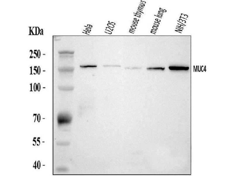 - Anti-MUC4 Antibody (ABIN7599886). Tested in ELISA, Flow Cytometry, WB applications. This antibody reacts with Human, Mouse. This is a premium antibody that guarantees superior quality, high affinity, and strong signals with minimal background in Western blot applications.