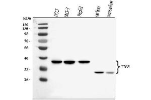 - Anti-TTPA/TPP1 Antibody (ABIN7599931). Tested in ELISA, Flow Cytometry, WB applications. This antibody reacts with Human, Mouse, Rat. This is a premium antibody that guarantees superior quality, high affinity, and strong signals with minimal background in Western blot applications.