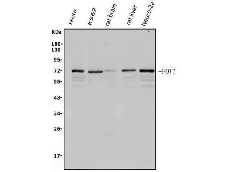 - Anti-POT1 Antibody (ABIN7600116). Tested in ELISA, Flow Cytometry, WB applications. This antibody reacts with Human, Mouse, Rat. This is a premium antibody that guarantees superior quality, high affinity, and strong signals with minimal background in Western blot applications.