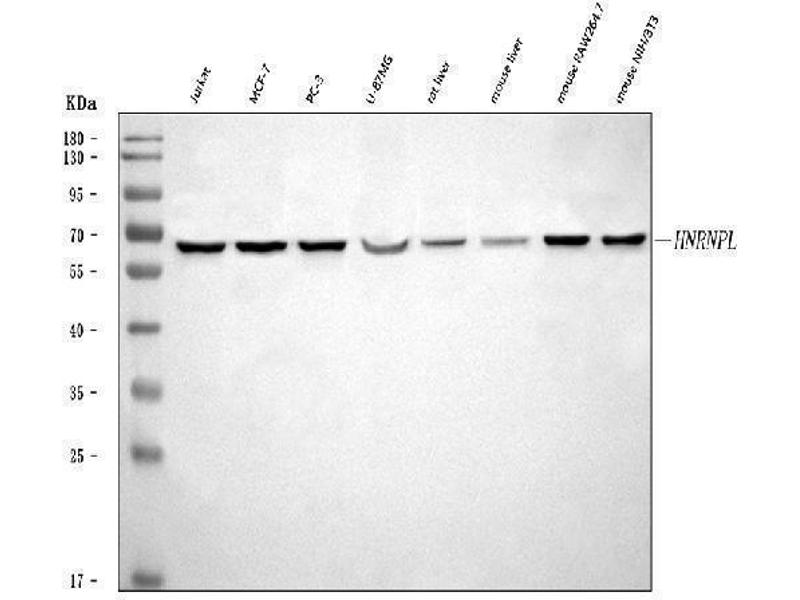 Synonyms: Heterogeneous nuclear ribonucleoprotein L,hnRNP L,HNRNPL,HNRPL,P/OKcl.14,