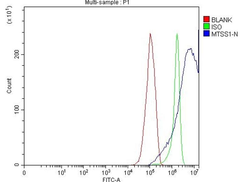 Background: Metastasis suppressor protein 1 is a protein that in humans is encoded by the MTSS1 gene. Enables actin monomer binding activity, identical protein binding activity, and signaling receptor binding activity. Predicted to be involved in cellular response to fluid shear stress, negative regulation of epithelial cell proliferation, and urogenital system development. Predicted to act upstream of or within several processes, including actin filament polymerization, adherens junction maintenance, and magnesium ion homeostasis. Located in actin cytoskeleton.