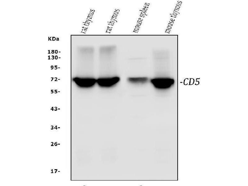 - Anti-CD5 Antibody (ABIN7600839). Tested in ELISA, IHC, WB applications. This antibody reacts with Mouse, Rat. This is a premium antibody that guarantees superior quality, high affinity, and strong signals with minimal background in Western blot applications.