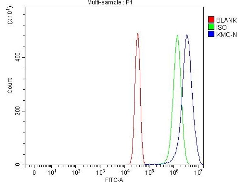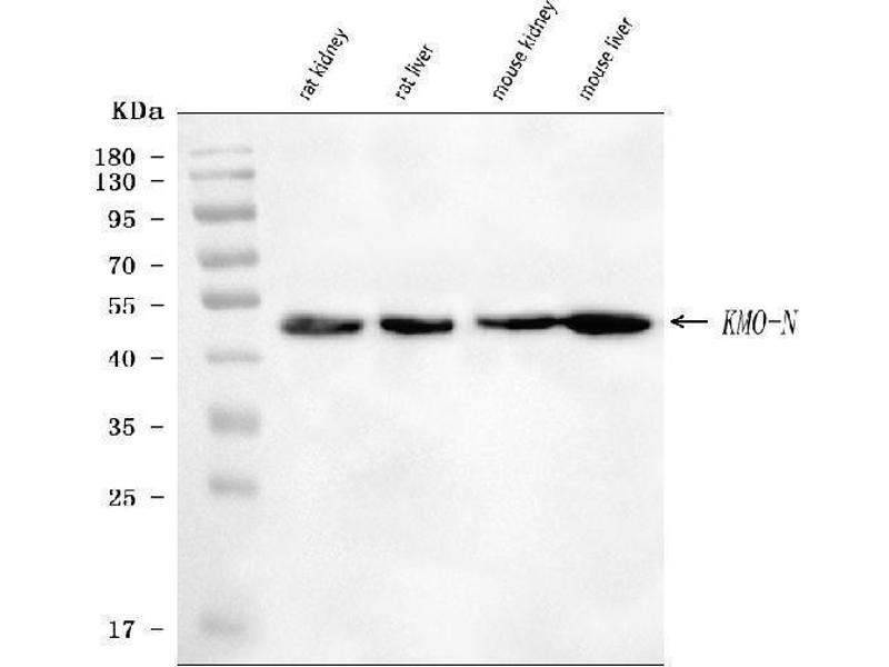 - Anti-KMO Antibody (ABIN7600958). Tested in ELISA, Flow Cytometry, IHC, WB applications. This antibody reacts with Human, Mouse, Rat. This is a premium antibody that guarantees superior quality, high affinity, and strong signals with minimal background in Western blot applications.