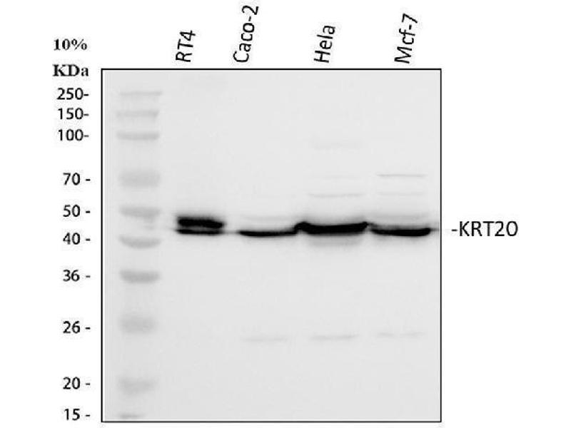 - Anti-Cytokeratin 20/Krt20 Antibody (ABIN7601133). Tested in ELISA, Flow Cytometry, IF, IHC, ICC, WB applications. This antibody reacts with Human, Mouse, Rat. This is a premium antibody that guarantees superior quality, high affinity, and strong signals with minimal background in Western blot applications.