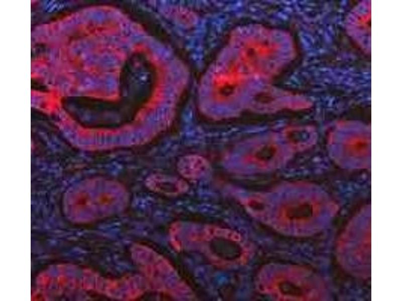 Background: Keratin 20, often abbreviated CK20, is a protein that in humans is encoded by the KRT20 gene. This gene encodes a member of the keratin protein family and is found within a cluster of cytokeratin genes on chromosome 11. Keratins are cytoskeletal proteins that are preferentially expressed in epithelial cells. The encoded protein may help maintain intermediate filament organization in intestinal epithelium. Phosphorylation of this protein may also influence mucin secretion in the small intestine.