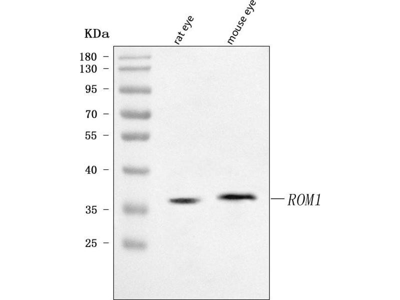 - Anti-ROM1 Antibody (ABIN7601303). Tested in ELISA, Flow Cytometry, WB applications. This antibody reacts with Human, Mouse, Rat. This is a premium antibody that guarantees superior quality, high affinity, and strong signals with minimal background in Western blot applications.