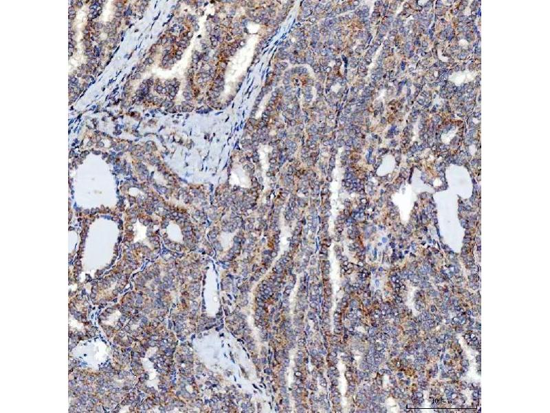 Tissue Specificity: Detected in liver, skeletal muscle, kidney, pancreas, spleen, thyroid, testis, ovary, small intestine and colon.