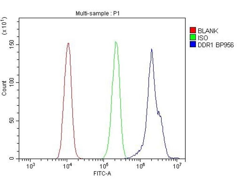 Background: DDR1 (Discoidin domain receptor family, member 1) also known as NEP, EDDR1, NTRK4, TRKE, DDR, CAK or RTK6, is a human gene. The protein encoded by this gene is a RTK that is widely expressed in normal and transformed epithelial cells and is activated by various types of collagen.This protein belongs to a subfamily of tyrosine kinase receptors with a homology region to the Dictyostelium discoideum protein discoidin I in their extracellular domain.The DDR1 gene is mapped on 6p21.33. The fibrillar collagens and immobilized collagen activatedDDR1receptor phosphorylation after prolonged treatment. Bhatt et al. (2000)showed thatDdr1was highly expressed in the cerebellum of developing and adult mouse brain, and that bothDdr1and collagen IV were highly expressed in the pial layer of the cerebellar cortex.Cocultures of collagen I- and IV-expressing mouse pial cells withDdr1-expressing granule cells resulted in granule cell neurite extension. Inhibition of collagen-Ddr1signaling reduced granule cell neurite elongation.