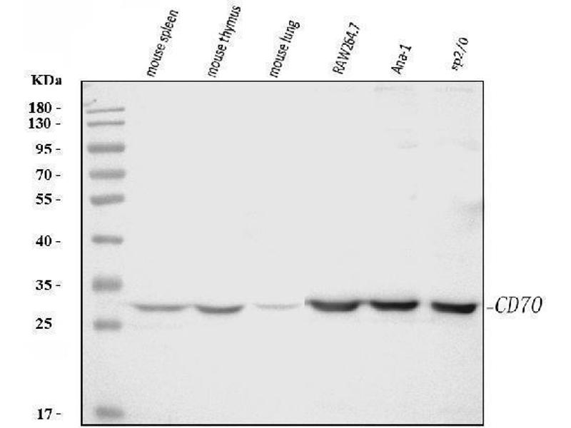 - Anti-Cd70 Antibody (ABIN7601463). Tested in ELISA, IHC, WB applications. This antibody reacts with Mouse, Rat. This is a premium antibody that guarantees superior quality, high affinity, and strong signals with minimal background in Western blot applications.