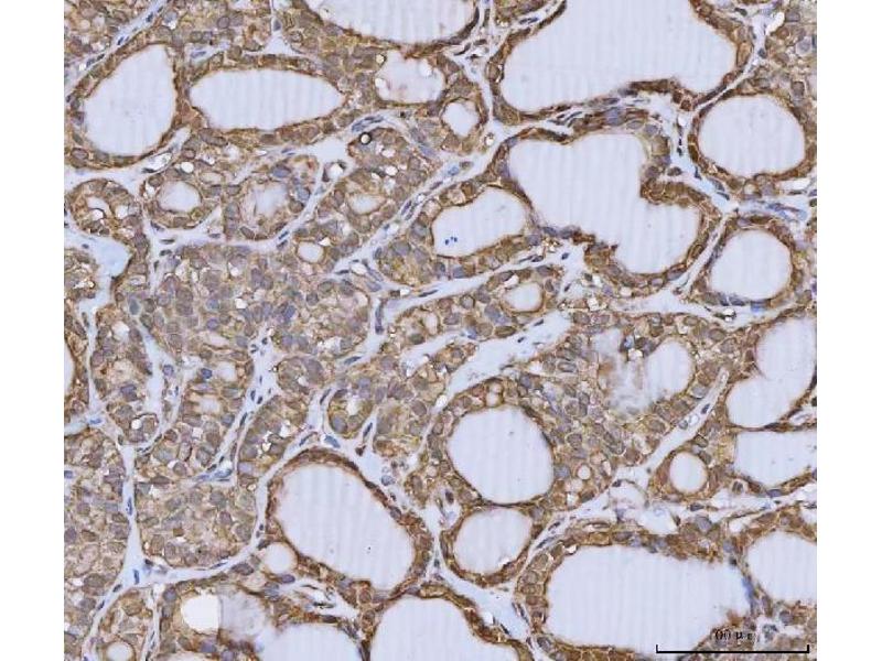 Tissue Specificity: Abundantly expressed in tonsil, lymph node, and trachea, strong expression in prostate, lower expression in thyroid, stomach, and colon. .