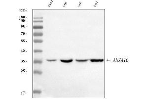 - Anti-Annexin A10/ANXA10 Antibody (ABIN7601853). Tested in ELISA, Flow Cytometry, IF, IHC, WB applications. This antibody reacts with Human. This is a premium antibody that guarantees superior quality, high affinity, and strong signals with minimal background in Western blot applications.