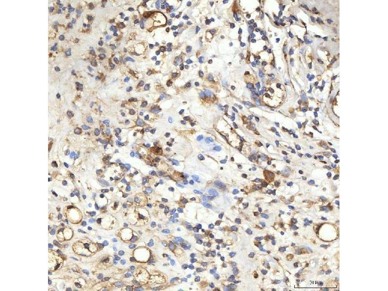 Tissue Specificity: Found in endothelial cells lining afferent lymphatics in dermis and lymph nodes. Also found in lymph nodes subcapsular and medullary sinuses, tonsillar lymphatic sinuses and lymphatics in mucosa and submucosa of small and large intestine and appendix. Also found in some malignant vascular tumors. Expressed at high levels in Kaposi sarcoma-related pathologies. Expressed on apoptotic neutrophils (at protein level). Expressed primarily in placenta and fetal liver, and found at very low levels in the lung and lymph node.
